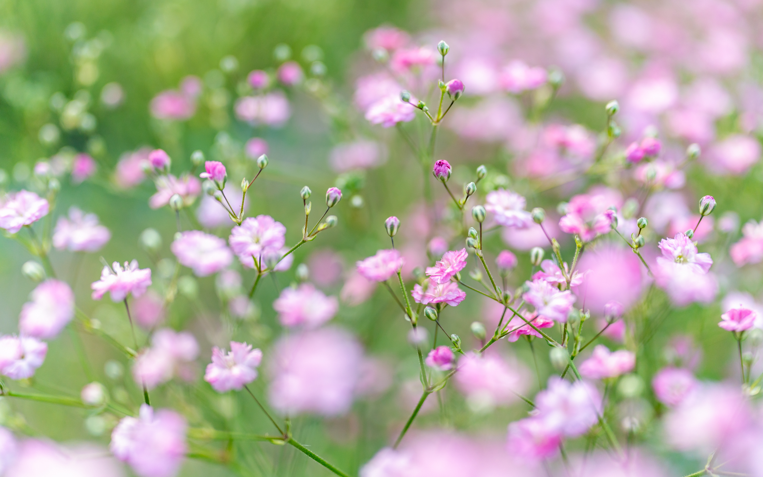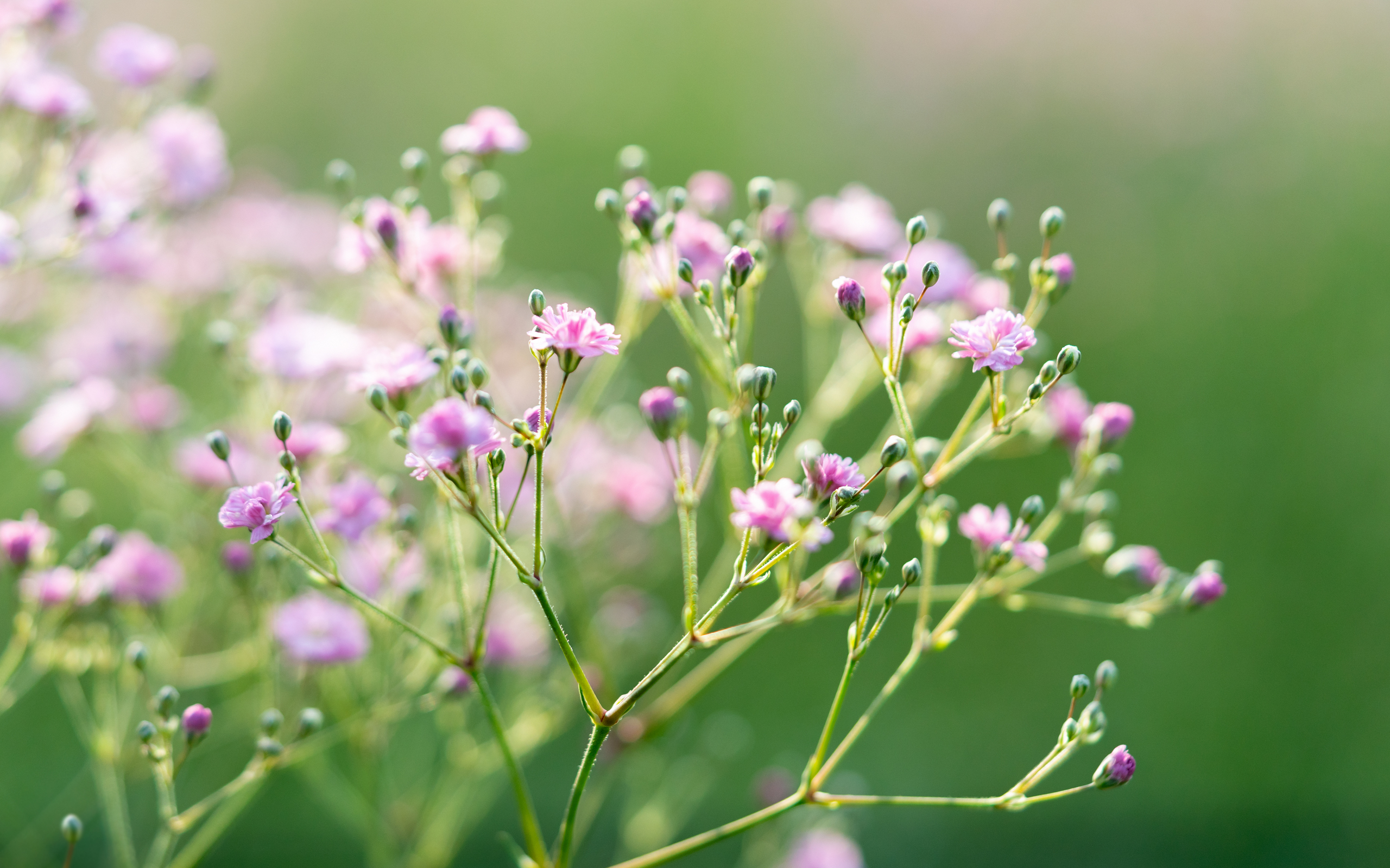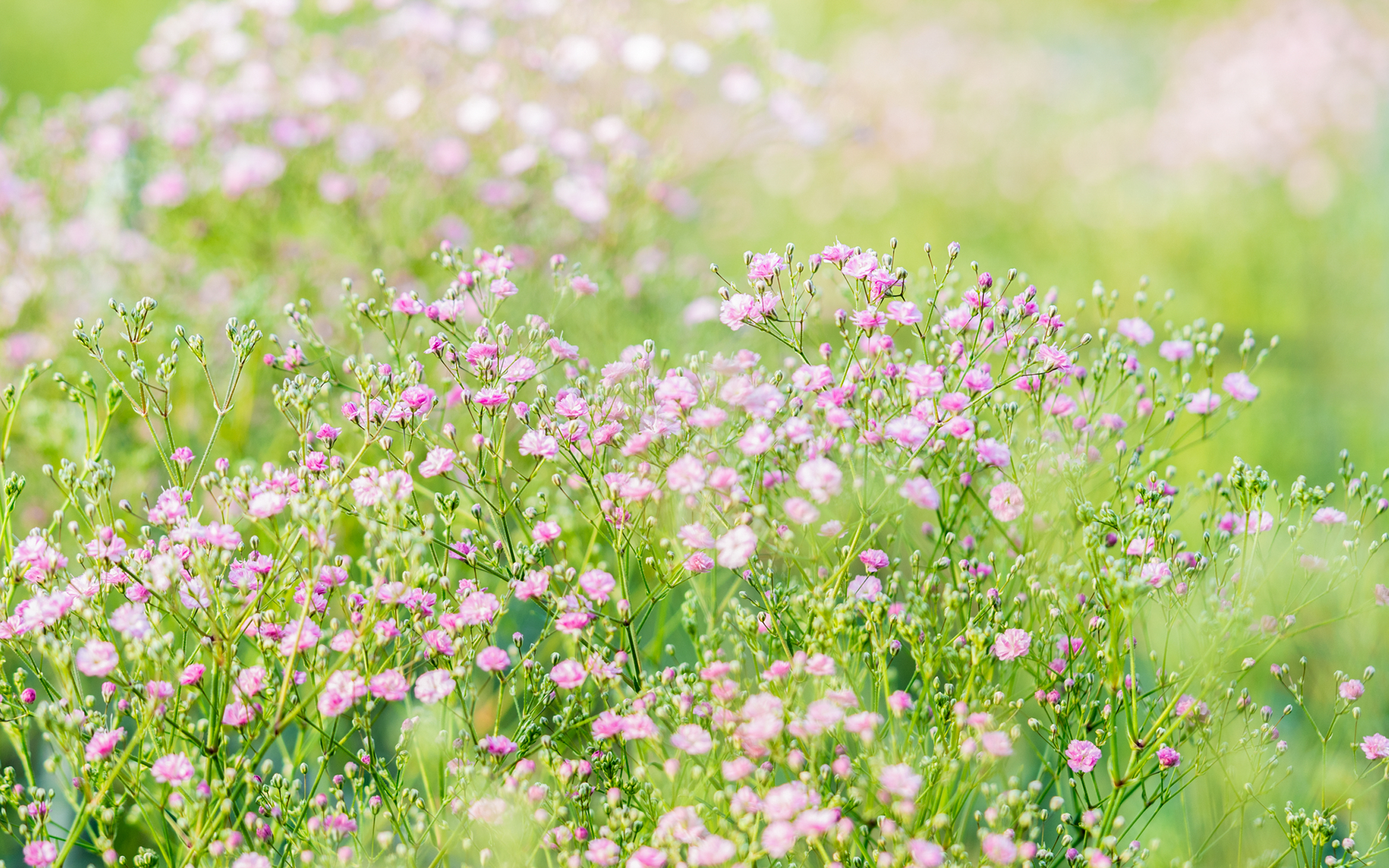 かすみ草の花言葉は「清らかな心」「無邪気」「幸福」「感謝」。ピンクのかすみ草には「感激」という花言葉があります。