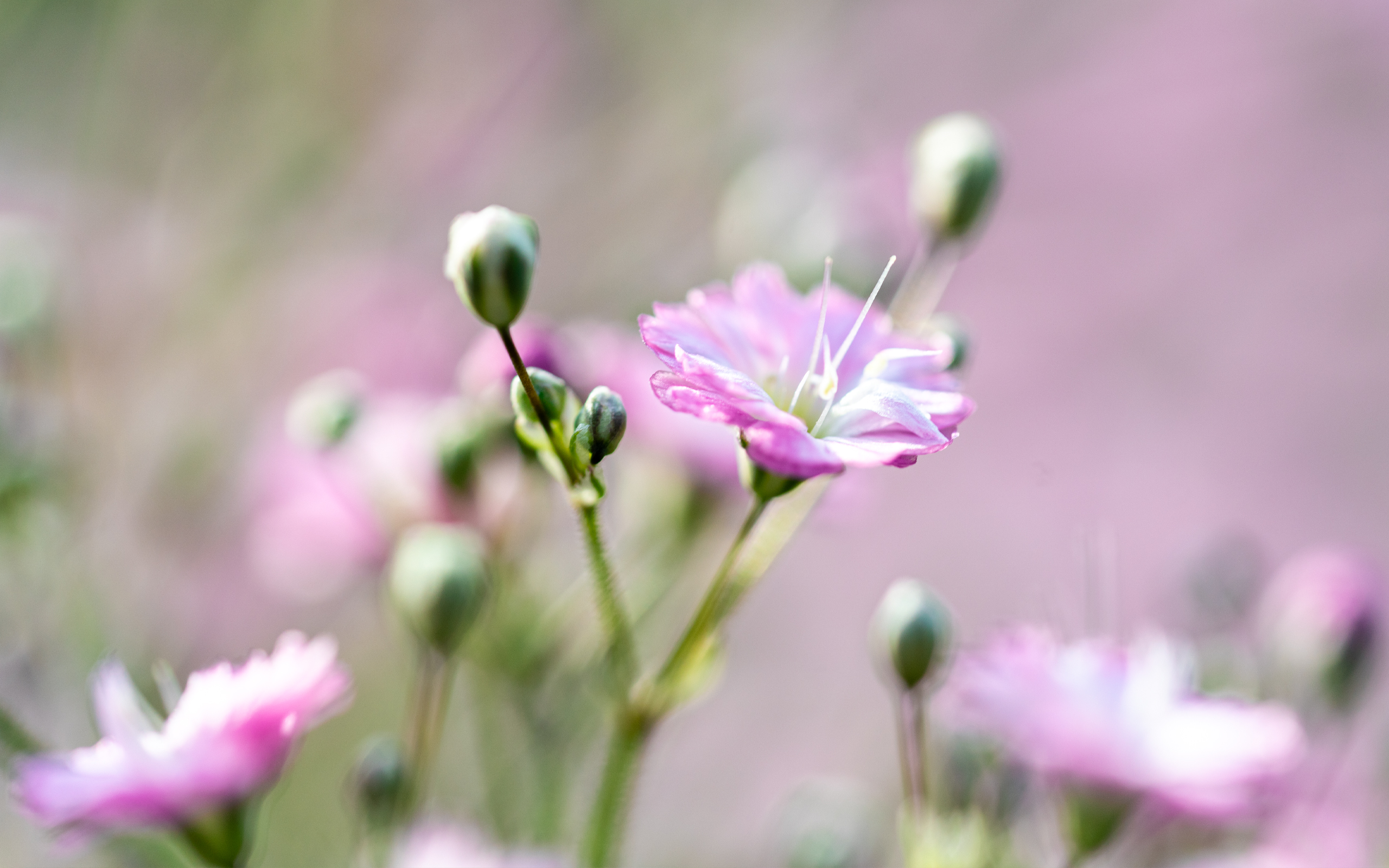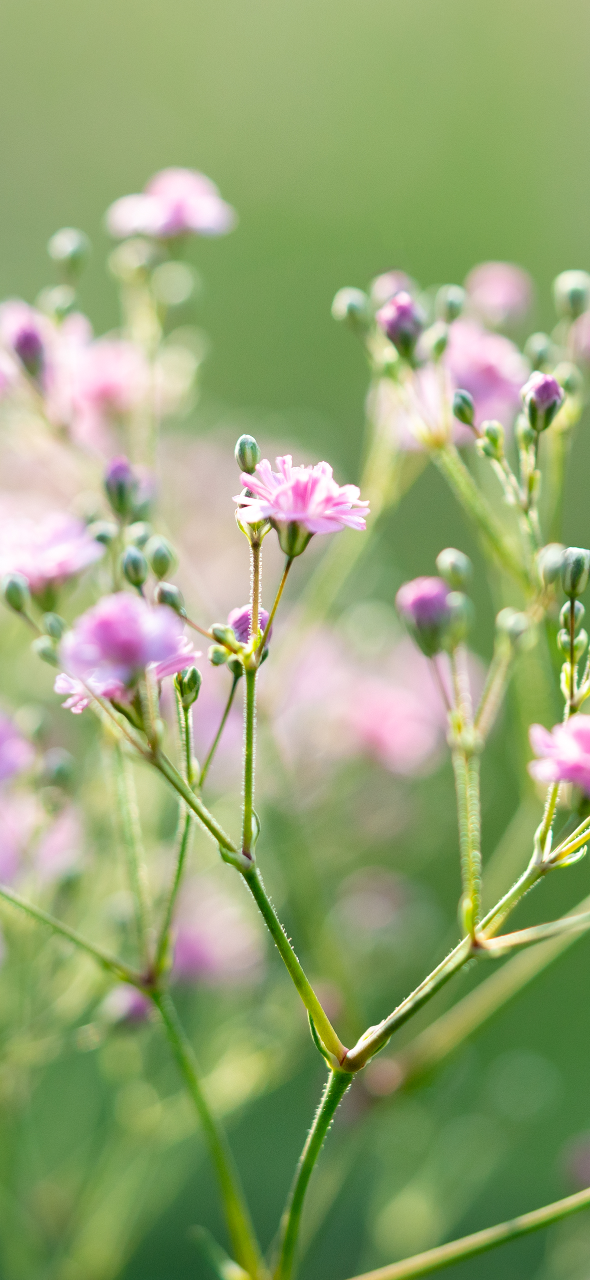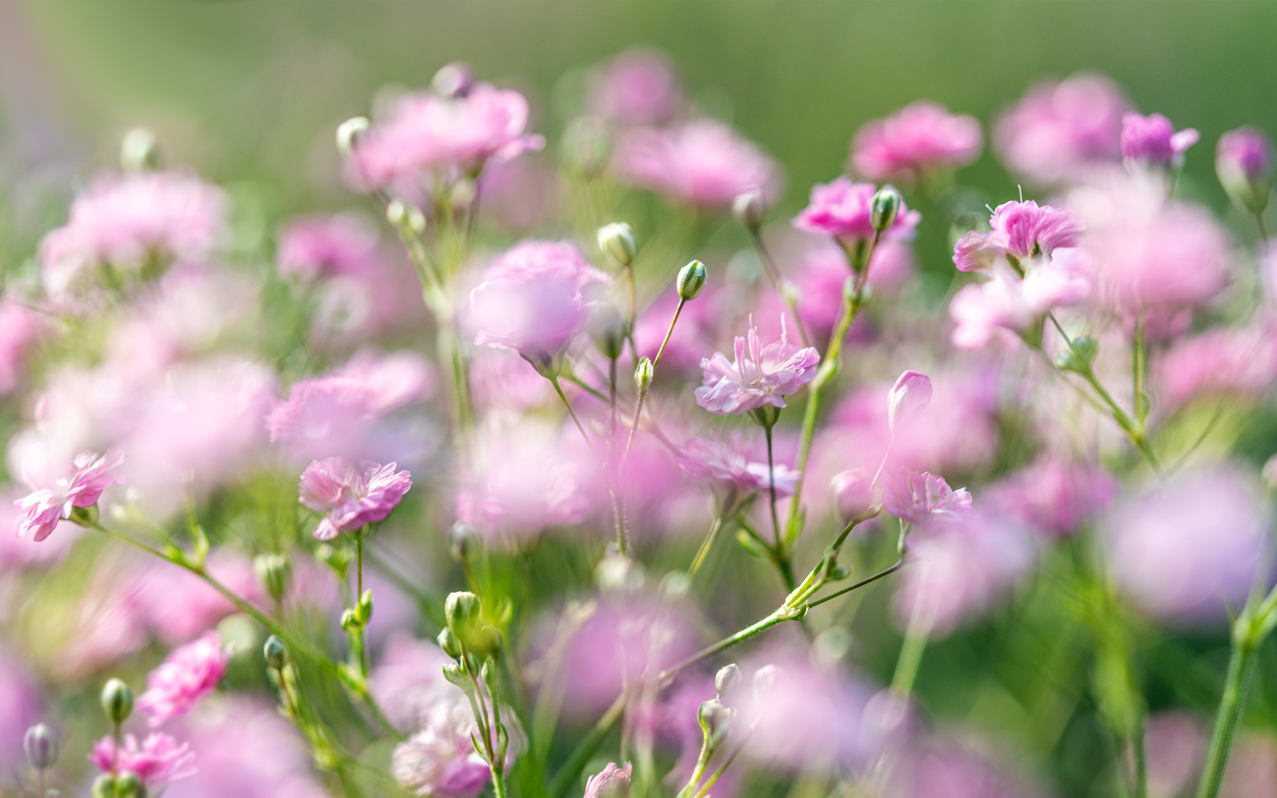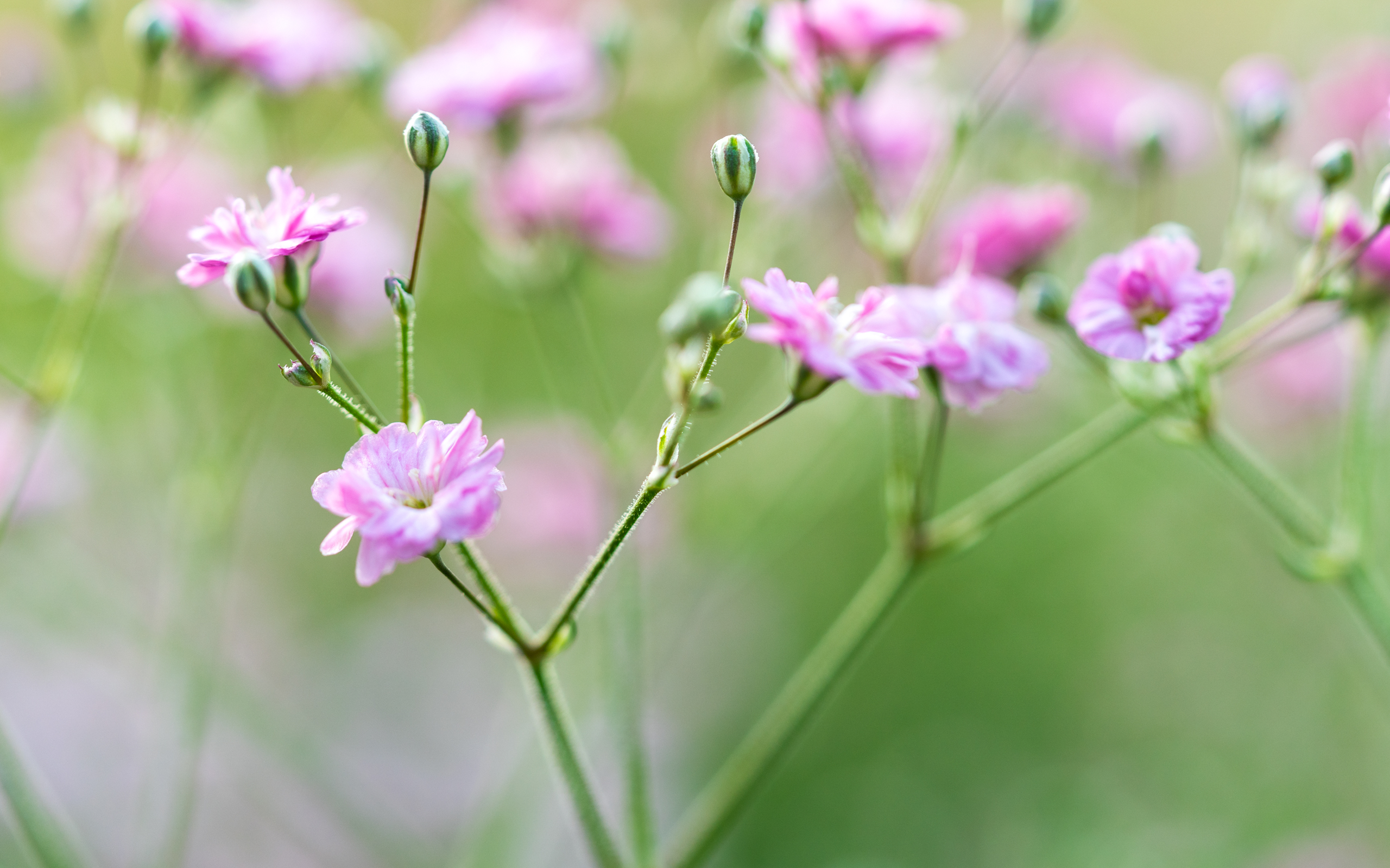 かすみ草の花言葉は「清らかな心」「無邪気」「幸福」「感謝」。ピンクのかすみ草には「感激」という花言葉があります。