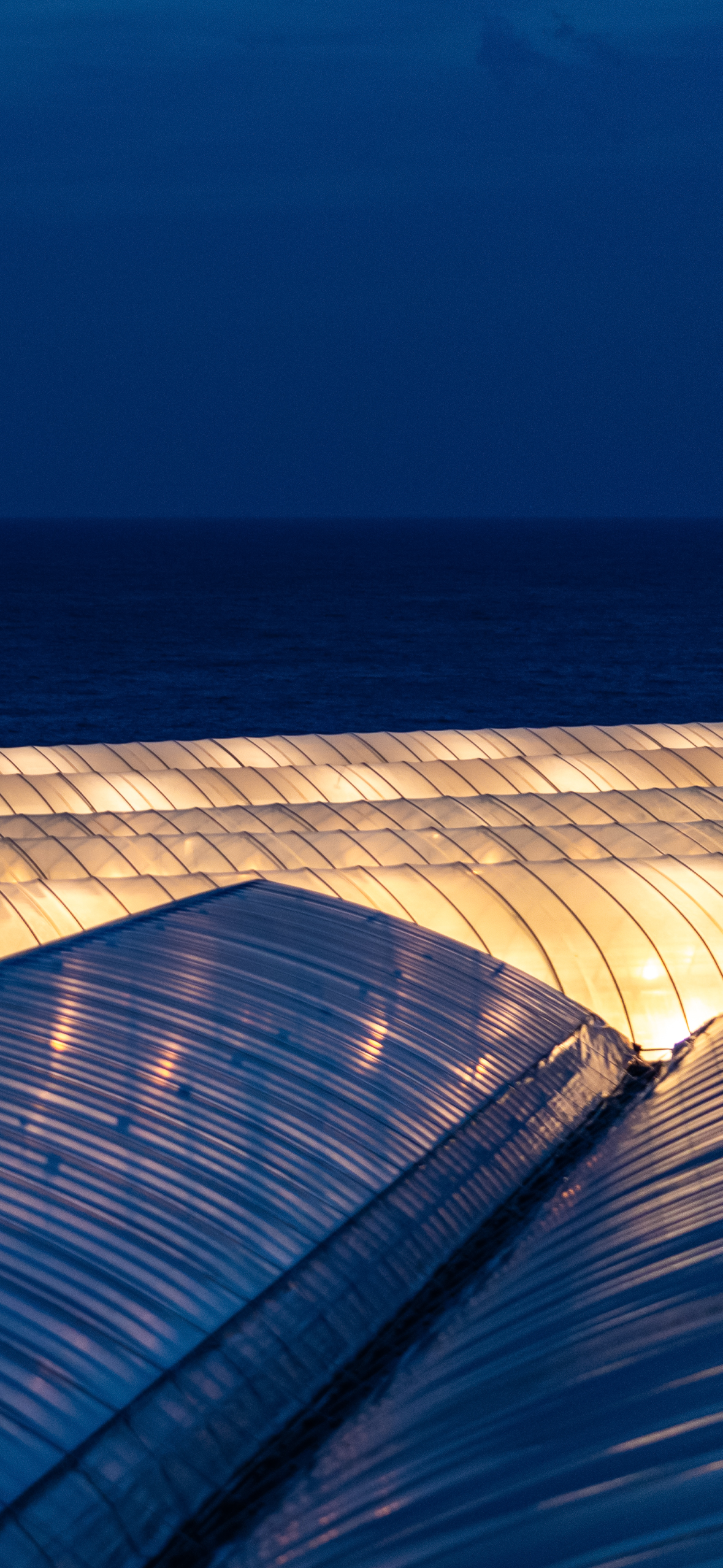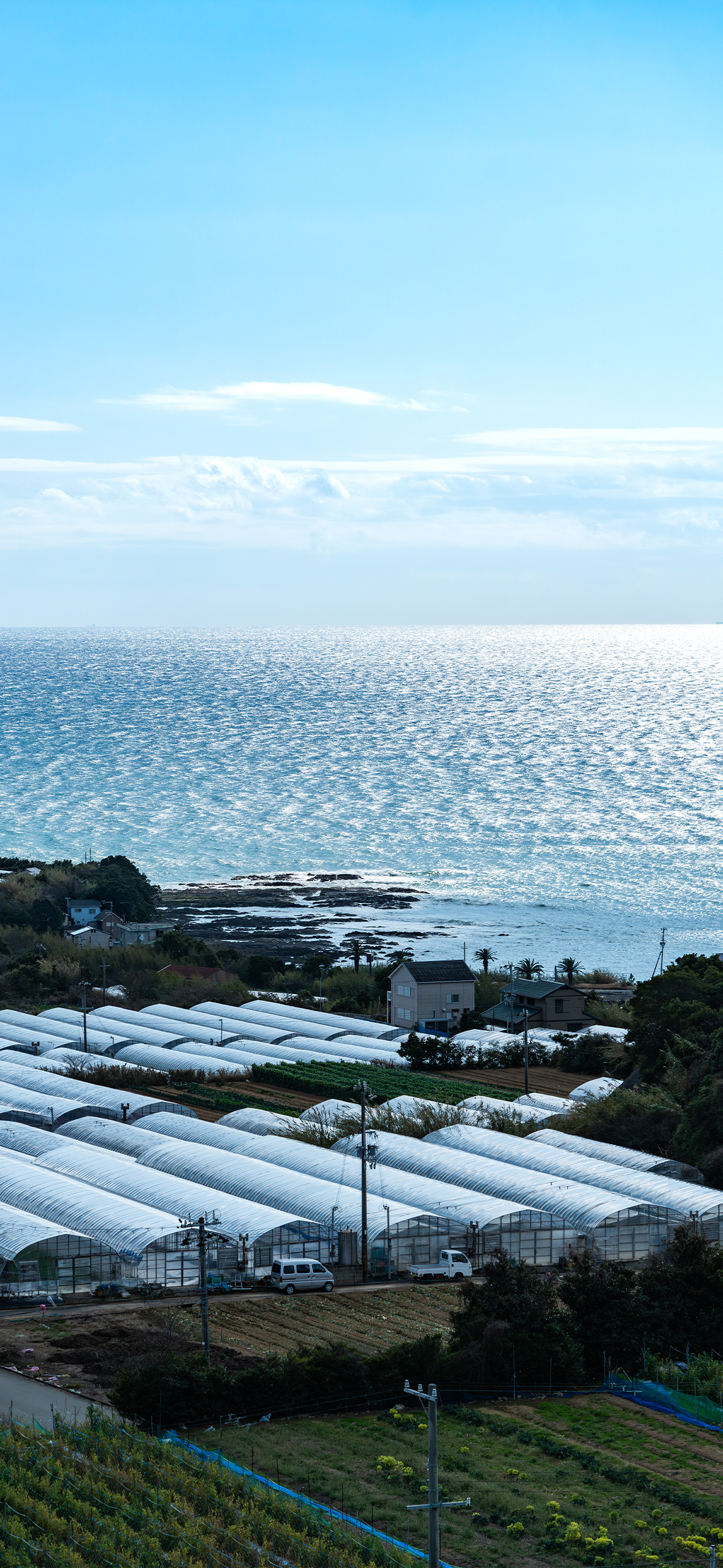 みなべいなみには3つの太陽があります。空の太陽、海に反射する太陽、そして山に反射する太陽です。この3つの太陽のおかげで、冬でも日中の温度を保ちます。さらに、冬場の日照時間を長くするために夜になるとハウスに電照をつけて育てます。
