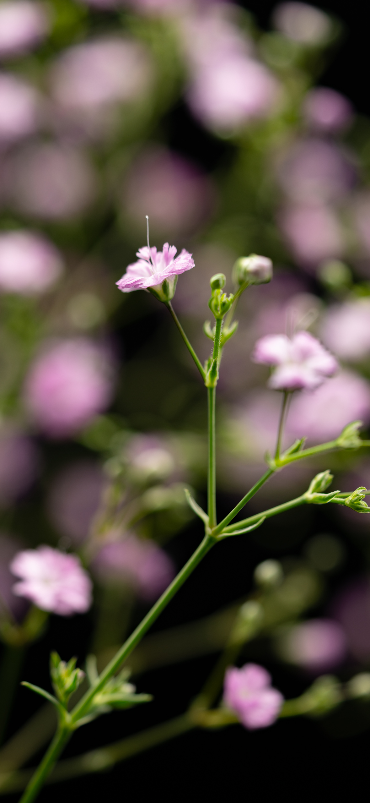 自然の風景とは違うスタジオ撮影されたかすみ草の姿をお楽しみください。